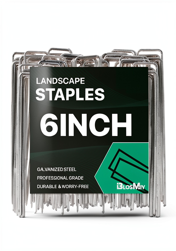 BLOSMIY landscape staples are crafted from high-quality alloy steel with a durable zinc coating, providing excellent resistance to rust and corrosion. These U-shaped staples measure 6 inches in length and 1.2 inches in width, available in packs of 25, 50, 100, or 200 to suit various project sizes. The 11-gauge thickness ensures strength and durability, while the silver finish blends seamlessly into outdoor environments. Designed for securing weed barrier fabric, garden fences, and drip irrigation tubing, these staples feature a fixing gasket for enhanced stability and a pick hook for easy removal. Weighing just 0.37 kilograms per pack, they are lightweight yet robust, making them a reliable choice for both residential and commercial use.