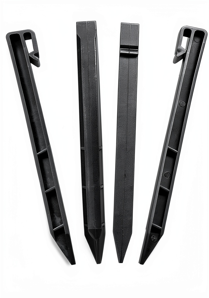 Inslat heavy-duty garden stakes are designed for reliable landscape edging and plant support. Made from durable UV-resistant plastic, these stakes measure 3.94 inches in length and 0.39 inches in width, with a weight of 1.11 kilograms per set. The sharp bottom design facilitates easy insertion into soil, while the bayonet-style top allows for secure attachment to edging and other fixtures. Available in multiple color options including black and brown, with sets of 8, 30, or 50 pieces to suit various project sizes. These stakes are ideal for creating defined borders in gardens, lawns, and planters, ensuring a polished and professional landscape appearance.