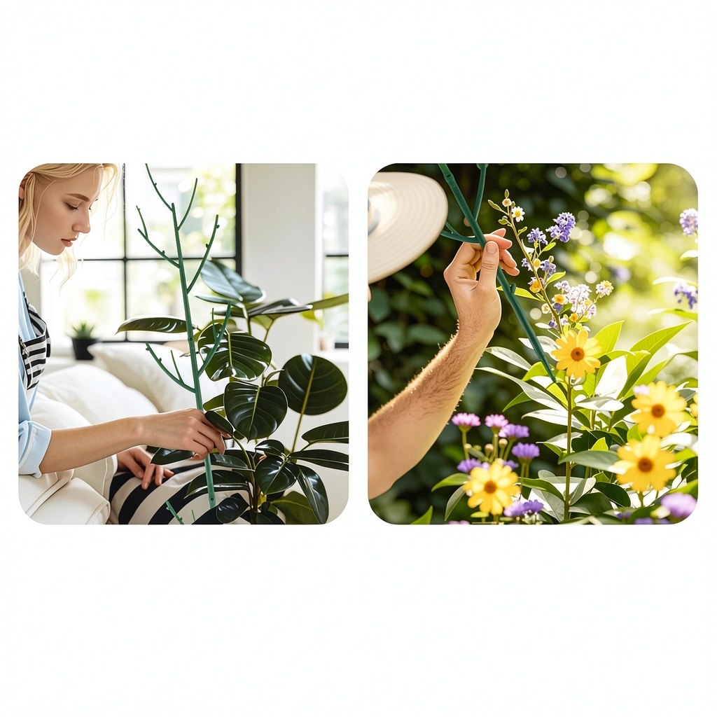These plant stakes are perfect for both indoor and outdoor gardening environments, from home gardens to professional setups. Use them to support climbing plants in pots, helping maintain upright growth and reducing the risk of breakage. They suit gardening enthusiasts and professionals alike, thanks to their adjustable height and stackable design, which allows customization for different plant sizes and types. Ideal for occasions like seasonal planting, decorative arrangements, or plant rehabilitation.