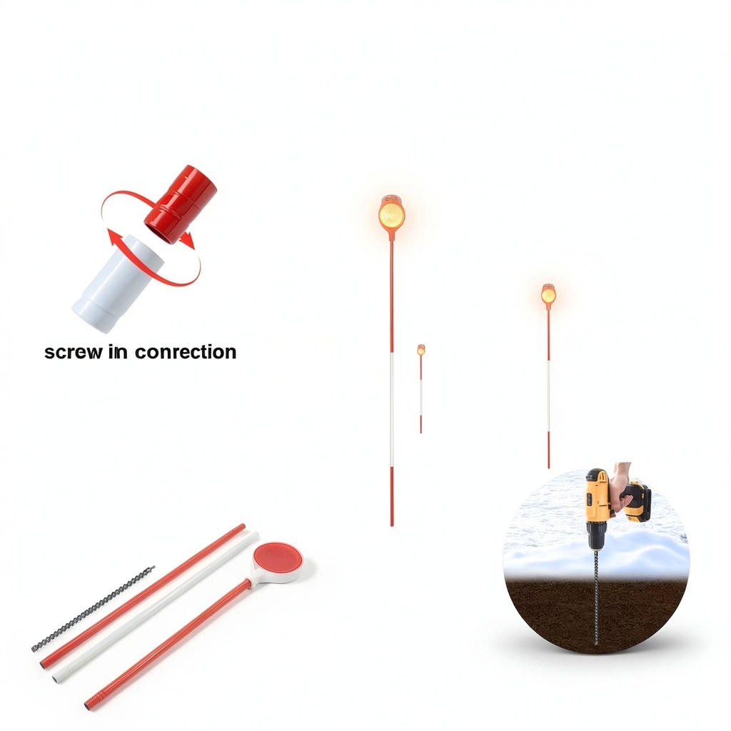 Installation is straightforward; all necessary parts and a drill bit are included. Simply assemble the marker and insert it into the ground, adjusting the height as needed for your scenario.